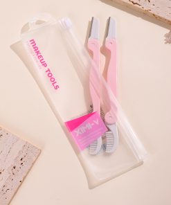 Color Series Double Head Eyebrow Razor with Comb 2Pcs (Pink+White)
