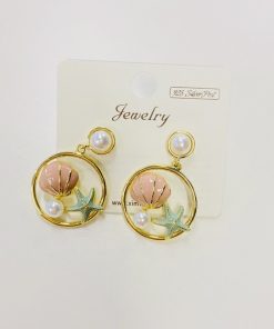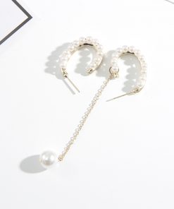Imitation Pearls C-Shaped Tassel Earrings with S925 Silver Pin