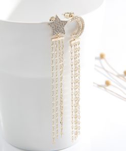Imitation Pearls C-Shaped Tassel Earrings with S925 Silver Pin