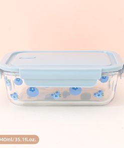 1040ml/35.1fl.oz. Rectangular Blueberry Pattern Glass Preservation Box (Blue)