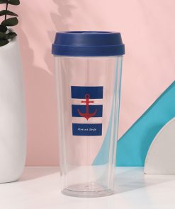 Marine Style Anti-Scald Double Wall Plastic Coffee Mug (Blue)(520ml/17.5fl.oz.)