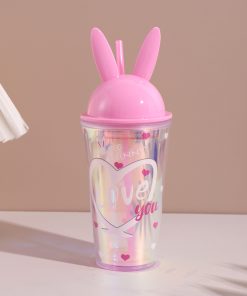 450ml/15.2fl.oz. LOVE Cute Bunny Plastic Cup with Straw (Pink) GL016