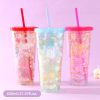 620ml/20.9fl.oz. Colorful Kitten Flip Lid Plastic Cup with Straw (Blue)