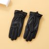 Bow PU Leather Gloves for Ladies(Black)