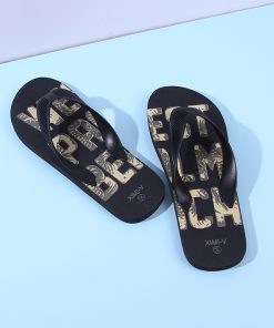 Stylish Letter Wide Strap Flip Flops for Men(Black)(40/41)