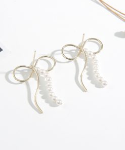 Imitation Pearls Bow Earrings with S925 Silver Pin