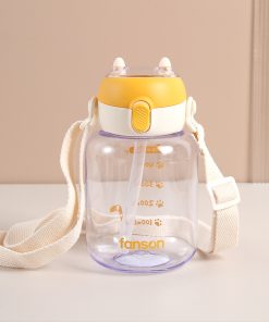 620ml/20.9fl.oz. Colorful Kitten Flip Lid Plastic Cup with Straw (Yellow)